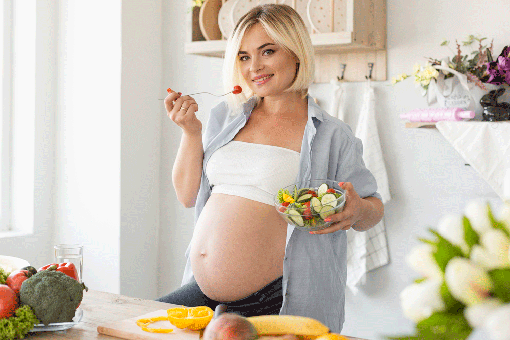 임신 중인 산모에게 가장 필수적으로 필요한 영양소는 단백질이다. 산모가 식품이나 보충제를 통해 섭취하는 단백질의 75%는 태아에게 그대로 전달된다. 특히 태아의 신체와 장기가 급격하게 발달하는 임신 초기의 경우에는 더욱 많은 단백질이 필요하다. 이 시기에는 동물성 단백질이 더 효과적이므로 지방함량이 낮은 살코기 위주의 닭고기, 소고기, 돼지고기를 섭취하는 것이 좋다. 또한 소고기와 돼지고기에는 철분과 비타민B가 풍부하여 산모와 태아의 필수 영양소를 공급해 줄 수 있다. 그중 철분은 태아에게 중요한 영양소로 결핍 시 저체중을 유발 확률이 있어 꾸준한 섭취가 필요하다.